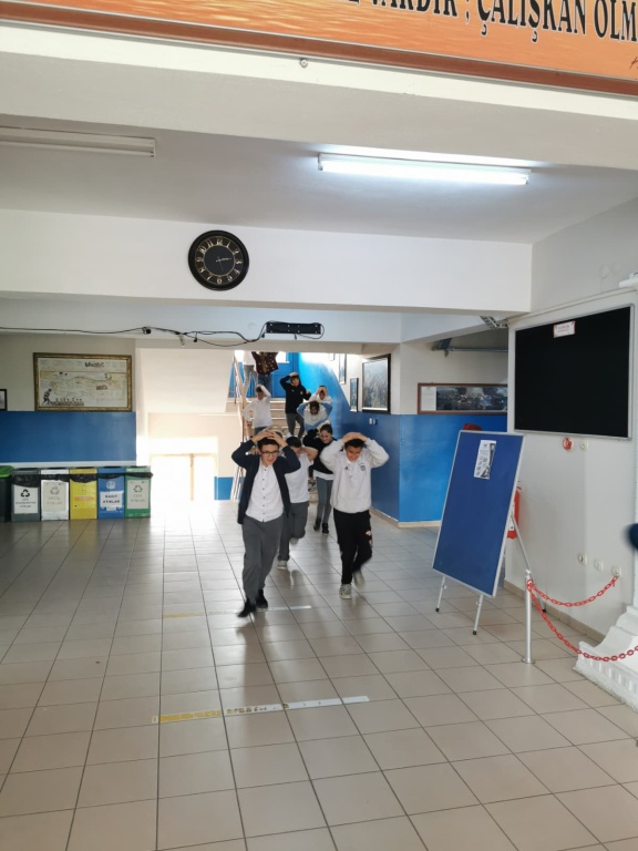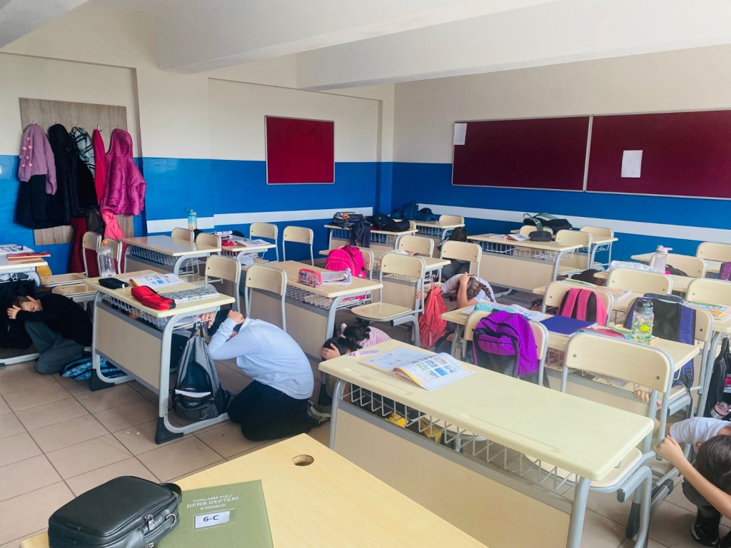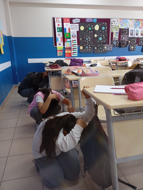 “Dünya Afet Risklerinin Azaltılması Günü” kapsamında saat 14:10’da okulumuz tüm personel ve öğrencilerimizin katıldığı tahliye tatbikatı yapıldı. Yaşanabilecek deprem, yangın gibi felaketlerde nasıl hareket edileceği, can kaybı ve yaralanmaların en aza indirilmesi için büyük önem taşıyan tatbikat planlandığı şekilde sorunsuz tamamlandı. İlk siren sesiyle birlikte tüm öğrenciler sınıflarında "Çök-Kapan-Tutun" pozisyonu aldılar. İkinci siren ile birlikte daha önce planlanan merdiven ve çıkış kapılarından tahliye gerçekleştirildi.